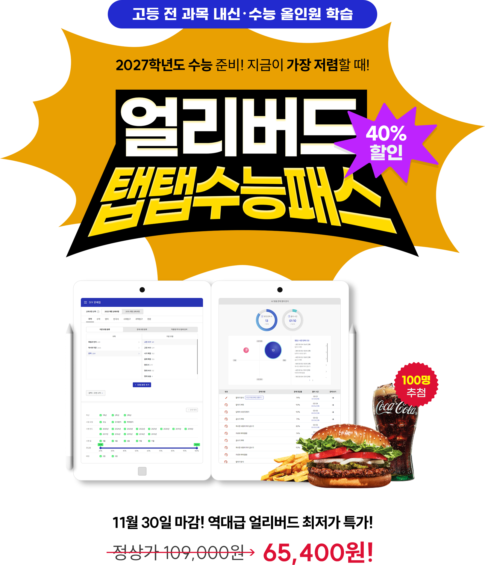 종이가 아닌, 태블릿PC 기기로 시간, 장소 구애받지 않고 자유롭게 수능 기출 학습 할 수 있는 부분이