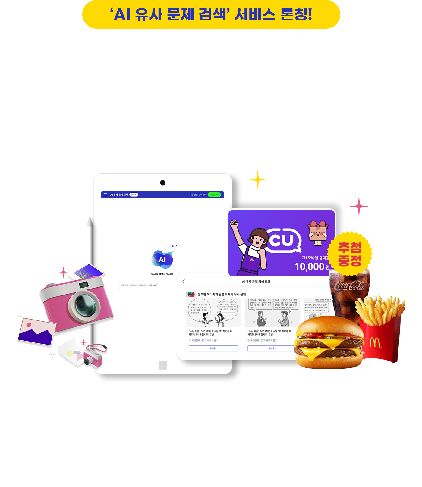 ※ 이벤트 참여하기 버튼 클릭 후 태블릿PC에서 AI 유사 문제 검색을 사용해 주세요.